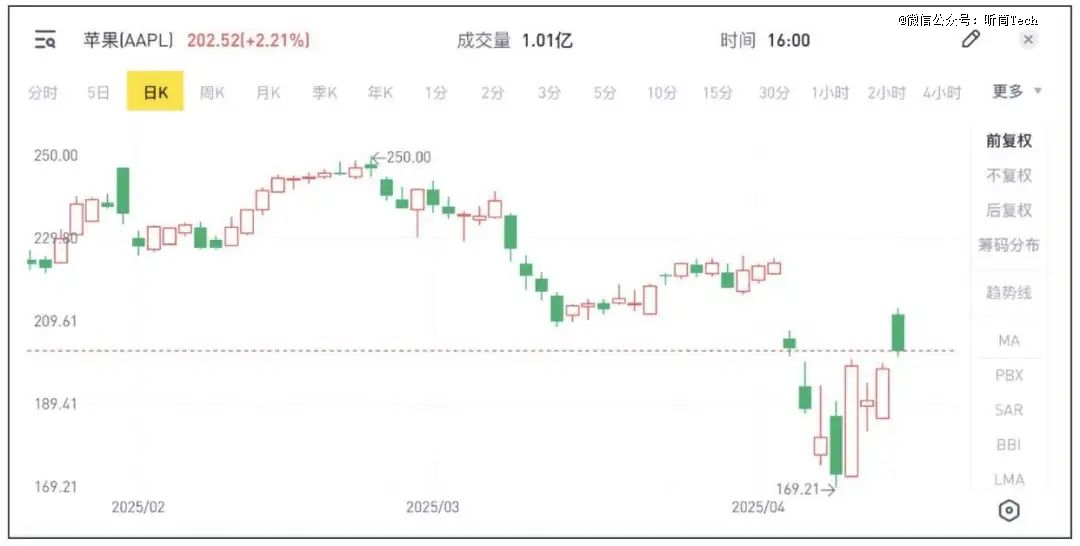 图:苹果股价走势图(截至北京时间2025年4月15日)