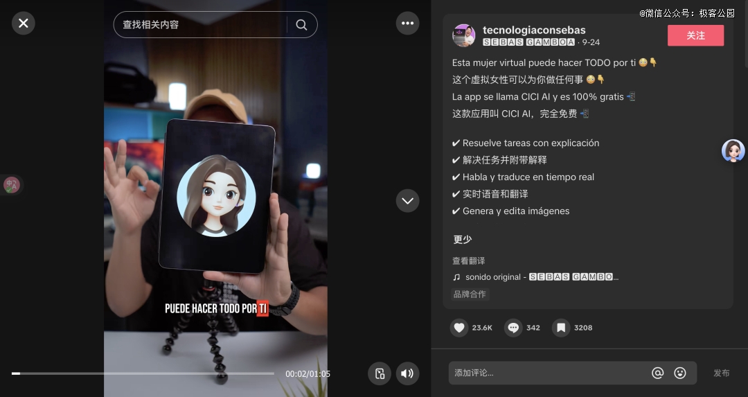 在 tiktok 上也有一些博主在推广 Cici|图片来源:极客公园