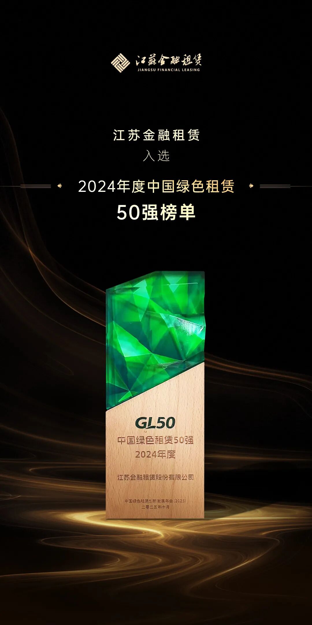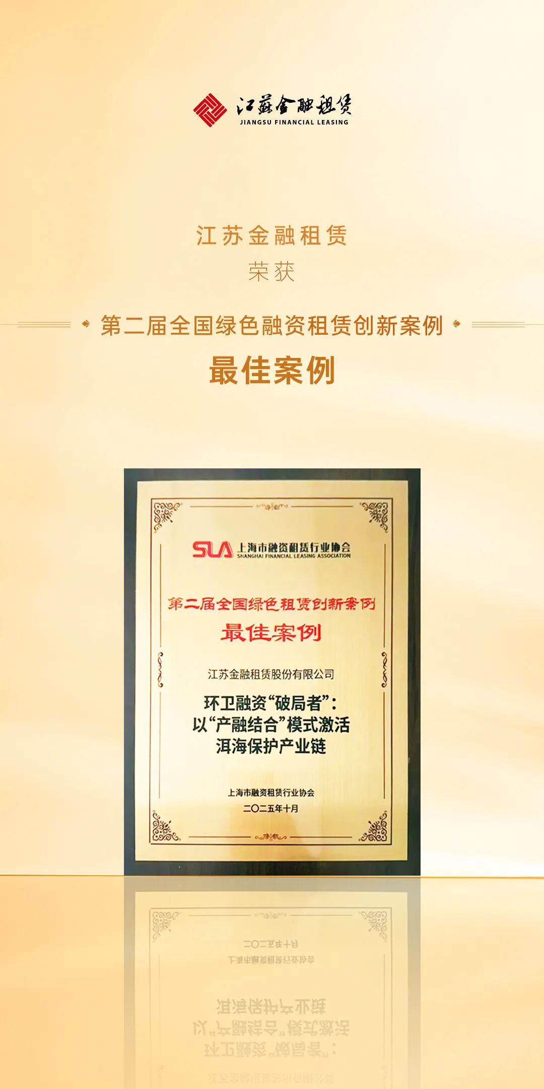 10月23日,首届中国绿色租赁创新发展年会(2025)暨长三角G60科创走廊ESG发展联盟合作交流大会在上海成功举行。江苏金融租赁股份有限公司(以下简称“江苏金租(600901)”)凭借其在绿色金融领域的创新实践与突出贡献,跻身“中国绿色租赁50强”,选送的“环卫融资‘破局者’:以‘产融结合’模式激活洱海保护产业链”项目荣获“第二届全国绿色融资租赁创新案例——最佳案例”。此次双项荣誉的取得,标志着江苏金租积极服务金融“五篇大文章”,在绿色金融方面取得了扎实成效,展现了融资租赁服务实体经济的绿色担当。