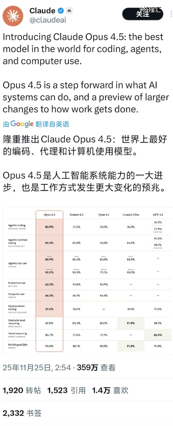 昨日深夜Anthropic放出了Claude Opus 4.5,其编程实力之强劲,连发布不过一周的Gemini 3 Pro、GPT-5.1惨遭降维打击。