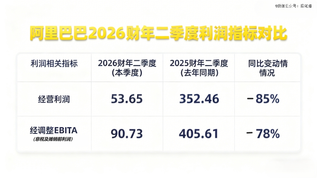 这两天,阿里发布了最新财报,利润大幅下降。2026财年二季度,它的(经营)利润约53.65亿,几乎少了300亿。